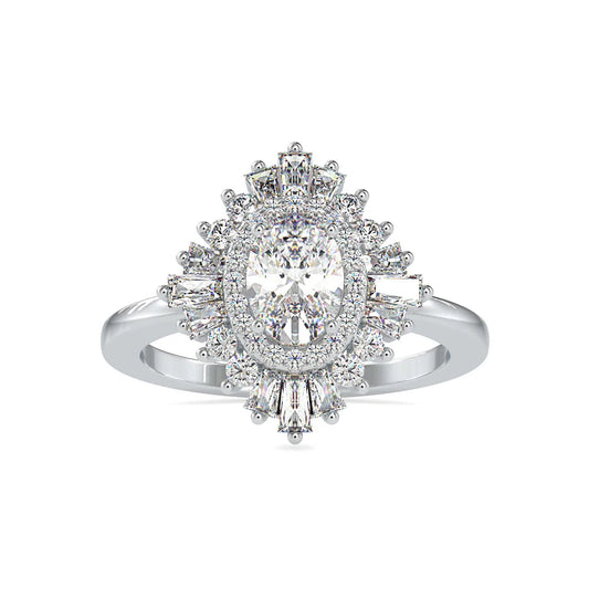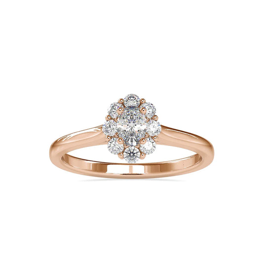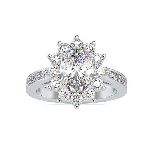 The shape that flatters every hand. An oval diamond paired with a sparkling halo this...