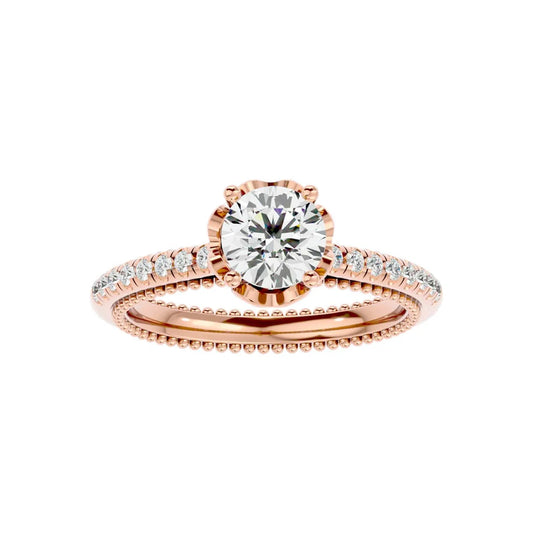 Subtle texture. Extraordinary sparkle. This beaded solitaire ring combines vintage-inspired milgrain detailing with a shimmering...