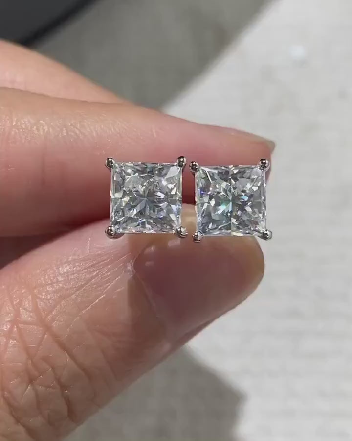 0.50 CT Princess Cut Diamond Stud Earrings in 14K Gold
